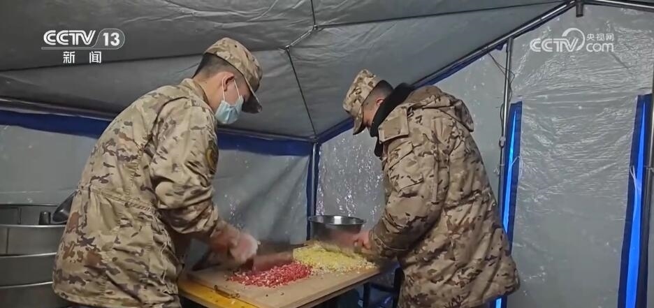 在青海民和中川鄉(xiāng)草灘村美一小學(xué)安置點(diǎn),官兵們準(zhǔn)備食材和面剁餡,他們要在這個(gè)特殊的日子,讓受災(zāi)群眾吃上一碗熱騰騰的餃子。帳篷里,群眾和官兵分工協(xié)作,處處洋溢著“家”的溫馨。