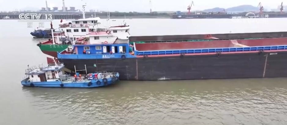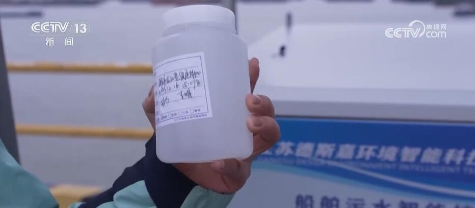 您看,這會在江面上不少大貨船旁都有一艘小船緊挨著它,這艘小船是污染物集中接收船,就相當(dāng)于長江上的“垃圾回收站”,連接兩艘船的管道后,船上生活污水即可被回收到接收裝置中。您看,我手里這杯清澈的水就是集中處理后的污水,目前達到了一級A類的標(biāo)準,也將會被重新直排回長江。?