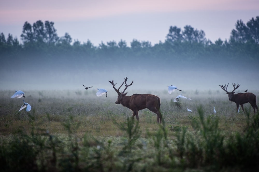 8月1日,兩頭麋鹿在湖北石首麋鹿國(guó)家級(jí)自然保護(hù)區(qū)內(nèi)活動(dòng)。