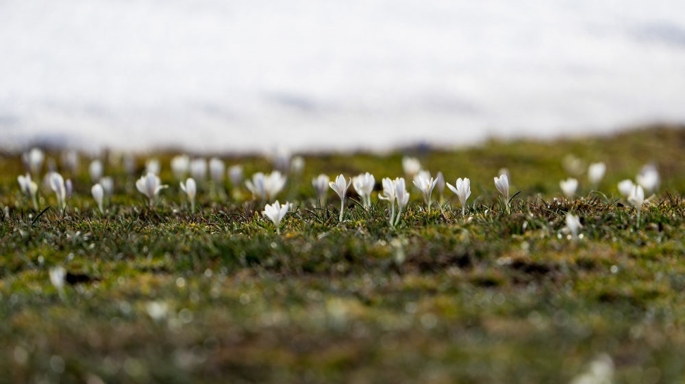 新疆那拉提草原上綻放的野百合(3月29日攝)。