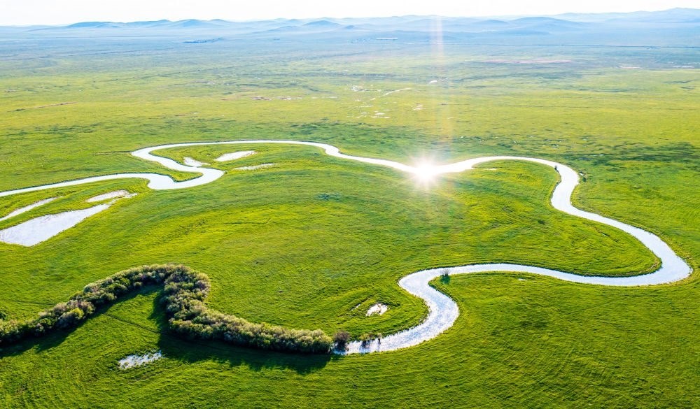 這是6月12日在內(nèi)蒙古自治區(qū)錫林郭勒盟東北部拍攝的烏拉蓋草原(無(wú)人機(jī)照片)。