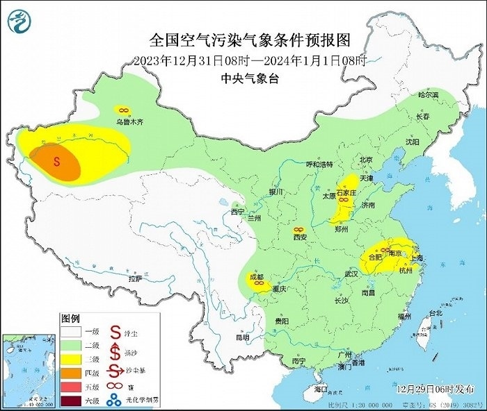 央視網(wǎng)消息:據(jù)中央氣象臺(tái)網(wǎng)站消息,12月29日早晨,中央氣象臺(tái)將大霧預(yù)警升級(jí)為最高等級(jí)的紅色,這也是今年首次發(fā)布大霧紅色預(yù)警。氣象監(jiān)測(cè)顯示,今晨,內(nèi)蒙古中部、寧夏北部、陜西、山西、河北中南部、天津、山東、河南、蘇皖中南部、浙江北部和西部、江西北部、湖北、湖南及四川盆地等地出現(xiàn)輕度到中度污染,部分地區(qū)重度污染;上述部分地區(qū)出現(xiàn)能見(jiàn)度不足1千米的大霧,其中河北、山東、安徽、江蘇、浙江及上海等局地能見(jiàn)度不足200米。今天早晨至上午時(shí)段,四川盆地至黃淮、江淮一帶的大霧天氣仍會(huì)持續(xù)。
