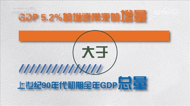 縱向看,目前我國每年GDP5.2%的增速所帶來的增量,已遠(yuǎn)超上世紀(jì)90年代初期全年GDP總量。