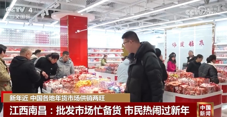 在江西南昌的這個(gè)批發(fā)市場,琳瑯滿目的商品擺滿貨架,糖果、干貨也到了銷量最好的時(shí)候。一大早,這里就迎來了前來購物的市民。