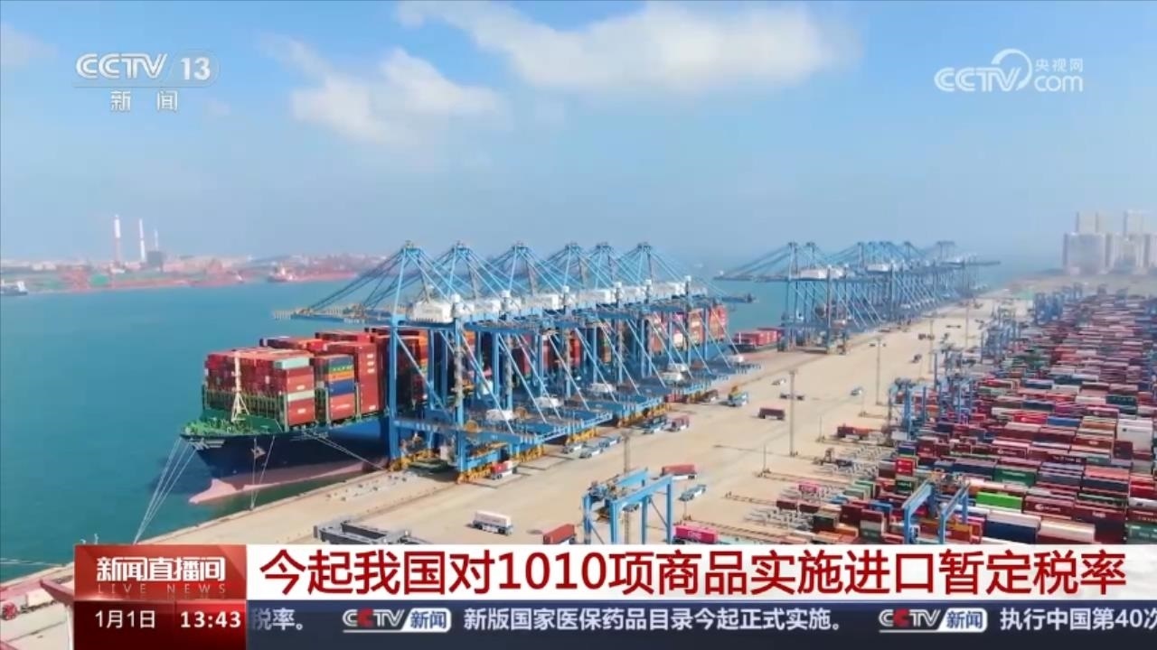 央視網(wǎng)消息:為增強(qiáng)國內(nèi)國際兩個(gè)市場(chǎng)、兩種資源聯(lián)動(dòng)效應(yīng),維護(hù)我國產(chǎn)業(yè)鏈、供應(yīng)鏈穩(wěn)定順暢,1月1日起,我國對(duì)1010項(xiàng)商品實(shí)施低于最惠國稅率的進(jìn)口暫定稅率。