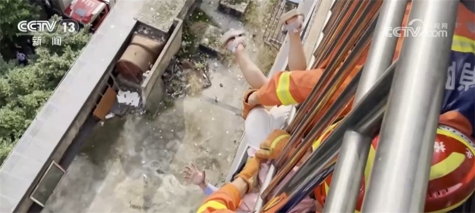 與此同時,消防部門來到樓上,在用工具強(qiáng)行破門之后,快速來到陽臺,最終在多方力量的配合下,成功將被困的小女孩兒救下。