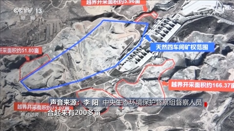 中央生態(tài)環(huán)境保護督察組督察人員李陽:“越界開采了,合起來有200多畝。”