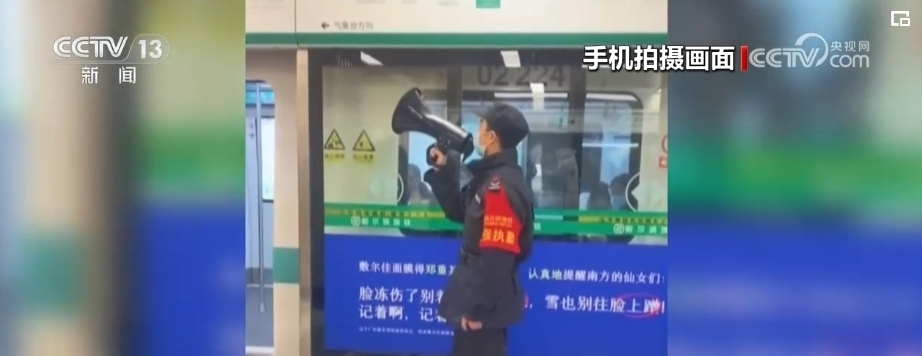 在地鐵站,執(zhí)勤小哥暖心喊話(huà),祝大家新年快樂(lè)。