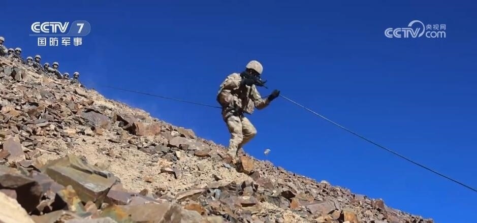新疆軍區(qū)某團(tuán) 黃文津:在下滑過(guò)程中制動(dòng)手一定要將繩子抓住,同時(shí)也要注意后方落石及腳下石頭,以免發(fā)生摔傷,是否清楚?