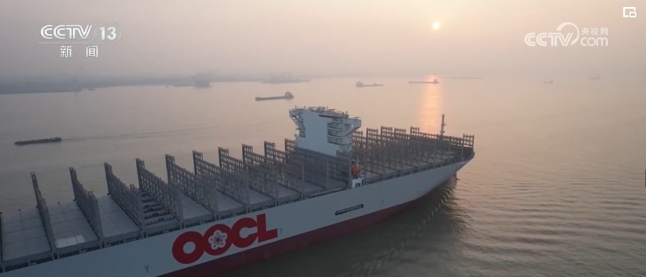 該船總長399.99米、型寬61.3米、型深33.2米,最大載貨量24188只標(biāo)準(zhǔn)集裝箱。滿載后可達22層普通住宅樓高度,甲板面積超過3個標(biāo)準(zhǔn)足球場,是我國2024年完工的首艘全球最大級集裝箱船。