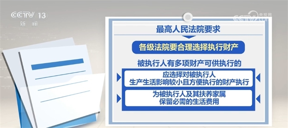 最高人民法院要求,各級法院要合理選擇執(zhí)行財產,被執(zhí)行人有多項財產可供執(zhí)行的,應選擇對被執(zhí)行人生產生活影響較小且方便執(zhí)行的財產執(zhí)行,同時,為被執(zhí)行人及其扶養(yǎng)家屬保留必需的生活費用。對涉及企業(yè)尤其是民營企業(yè)的,要嚴格區(qū)分企業(yè)法人財產與股東個人財產,嚴禁違法查封案外人財產,嚴禁對不得查封的財產采取執(zhí)行措施,堅決杜絕超標的查封,切實保護民營企業(yè)等企業(yè)法人、企業(yè)家和各類市場主體合法權益。