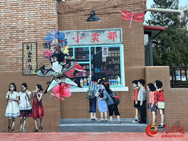 ?泊江東里小區(qū)的墻體彩繪,不僅是附近美麗的風(fēng)景,還成為不少游客的打卡地。人民網(wǎng)記者 孫翼飛攝