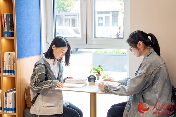 書吧里,兩位年輕的居民在享受安靜的閱讀時(shí)光。人民網(wǎng)記者 孫翼飛攝