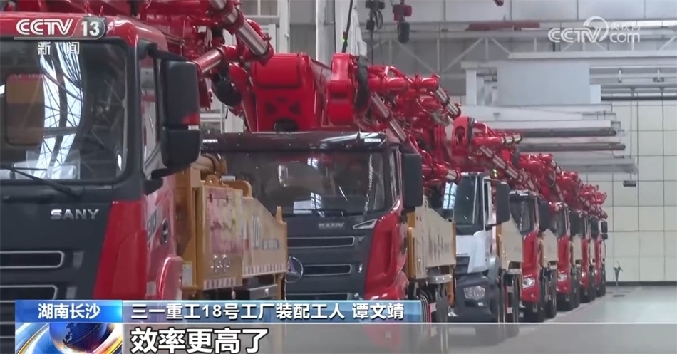 三一重工18號(hào)工廠裝配中心泵能上線班班長(zhǎng) 凌鴻桂:干完了活,我們都可以提前下班,產(chǎn)量提升,工人的工資提高了。