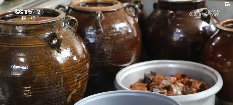 云南施甸縣,臨近春節(jié)家家戶(hù)戶(hù)開(kāi)始煉豬油,制作“油罐肉”喜迎新年。油脂豐腴、御寒潤(rùn)燥的豬油是制作各種菜品不可或缺的動(dòng)物油脂,也可以將豬肉封存于油罐之中。一塊塊五花肉、里脊肉、豬肚、粉腸……在油鍋中水分逐步揮發(fā),釋放美妙的芳香。
