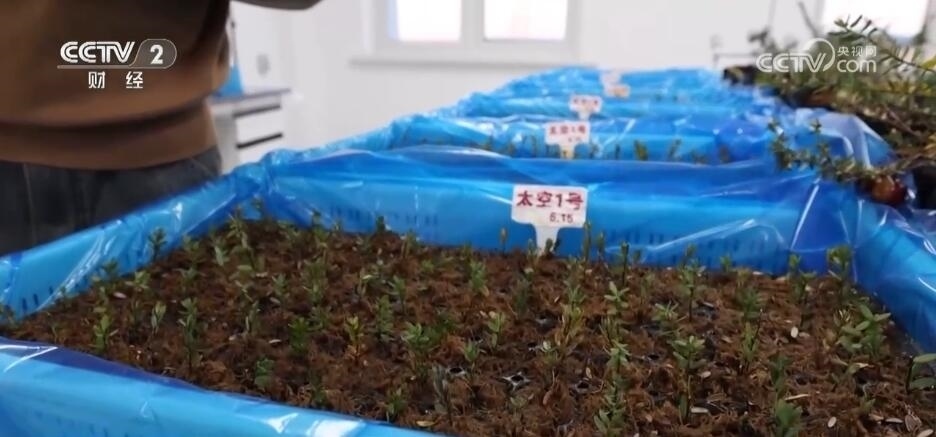 總臺記者 張程:在我身邊的這些蔓越莓苗,就是在2022年的6月5號,跟隨神舟14號飛船上天之后,又返回地球的蔓越莓種苗,現(xiàn)在已經(jīng)是破土而出。蔓越莓種植時(shí)間比較長,三年掛果,五年才能夠進(jìn)入到豐產(chǎn)期。而我們在這邊看到的就是2015年的種苗,現(xiàn)在正好處在盛果期,這個(gè)果子形如瑪瑙、色澤鮮亮。