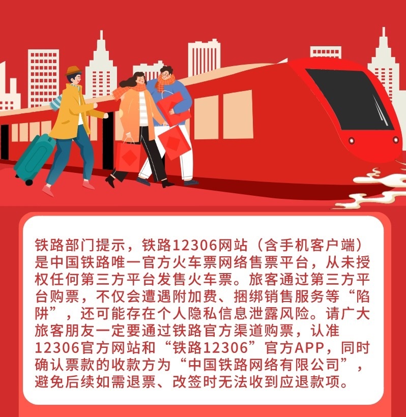 今年春運,鐵路部門升級了12306候補購票、購票信息預填、起售提醒訂閱、學生和務工人員專區(qū)預約購票等服務功能,優(yōu)化車票改簽規(guī)則,豐富12306信息通知服務內(nèi)容,進一步改善旅客購票出行體驗。