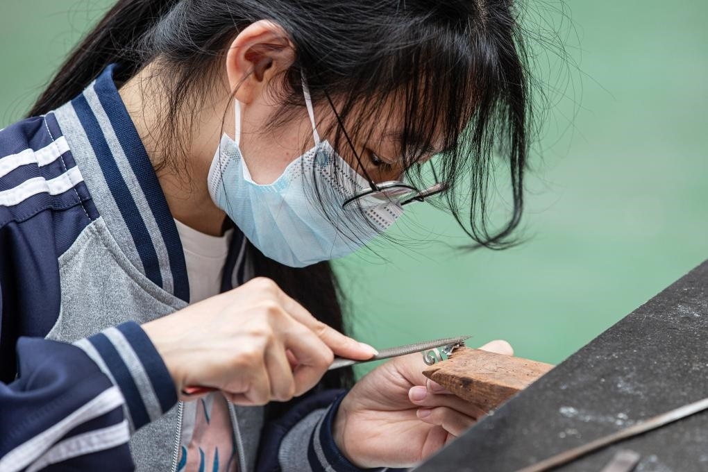 ?2023年11月29日,山東昌樂(lè)技師學(xué)院首飾設(shè)計(jì)與制作專(zhuān)業(yè)師生在練習(xí)專(zhuān)業(yè)技能。新華社記者張力元 攝