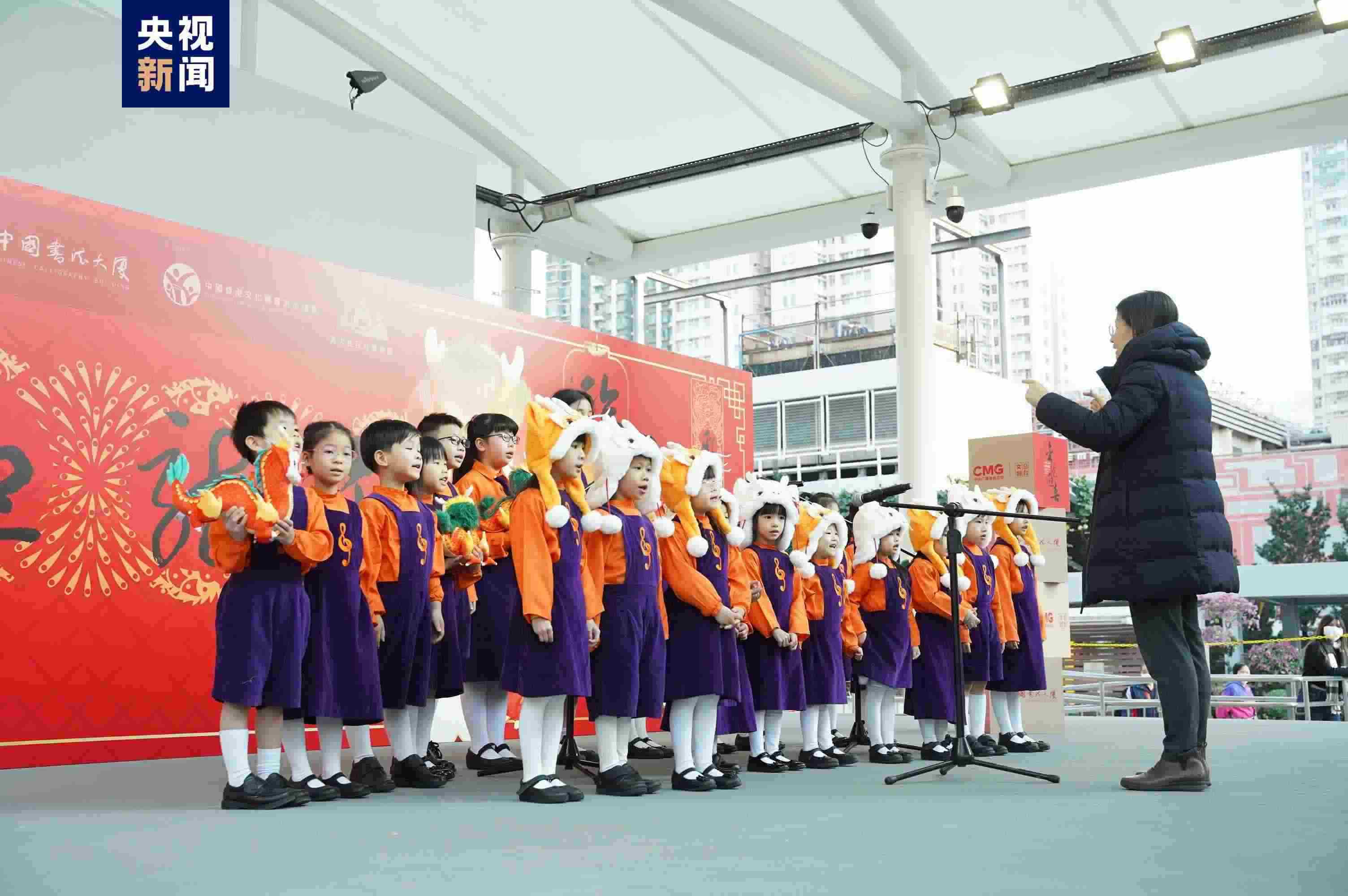 精神振奮的醒獅表演、耳熟能詳?shù)某绷鹘鹎⑾矐c熱鬧的氣氛吸引了眾多香港市民駐足觀看。