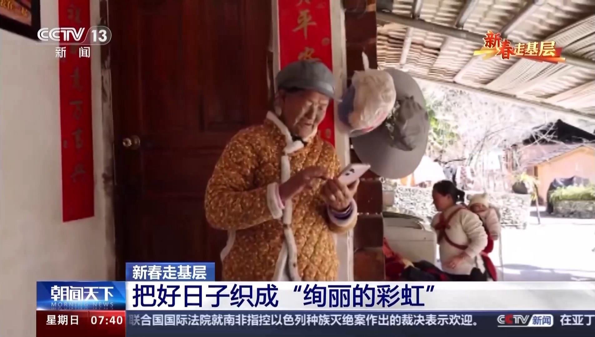 當(dāng)記者找到她時,老奶奶正在熟練地玩手機。自從2022年,5G網(wǎng)絡(luò)覆蓋了獨龍江鄉(xiāng)的6個行政村后,李文仕奶奶除了務(wù)農(nóng)織布、唱歌跳舞,還培養(yǎng)了一個新的愛好,就是網(wǎng)上沖浪。