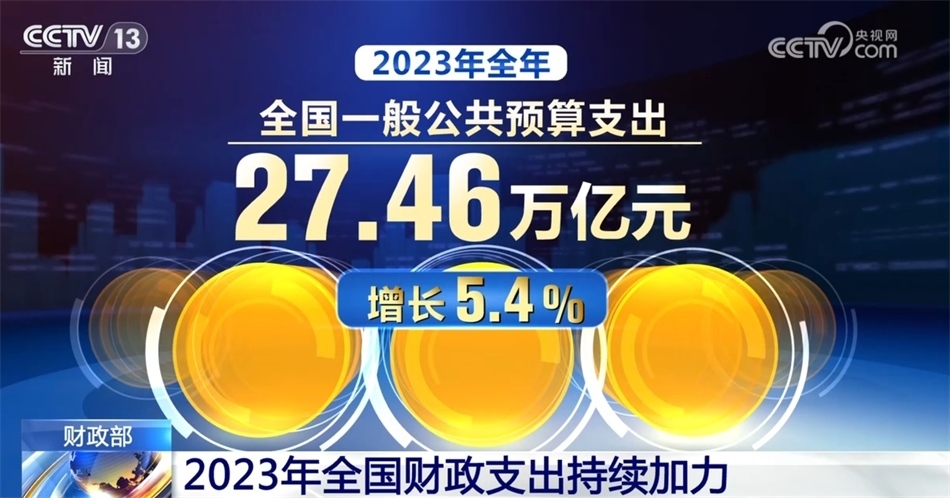 2023年,財政收入保持恢復性增長態(tài)勢,財政支出持續(xù)加力。具體來看,去年年初,財政赤字率按3%安排。同時,為支持災后恢復重建和提升防災減災救災能力,去年四季度增發(fā)1萬億元國債,全部通過轉移支付安排給地方。2023年全年,全國一般公共預算支出27.46萬億元,增長5.4%。社會保障和就業(yè)、教育、科學技術、農林水、城鄉(xiāng)社區(qū)等重點支出領域保障有力。