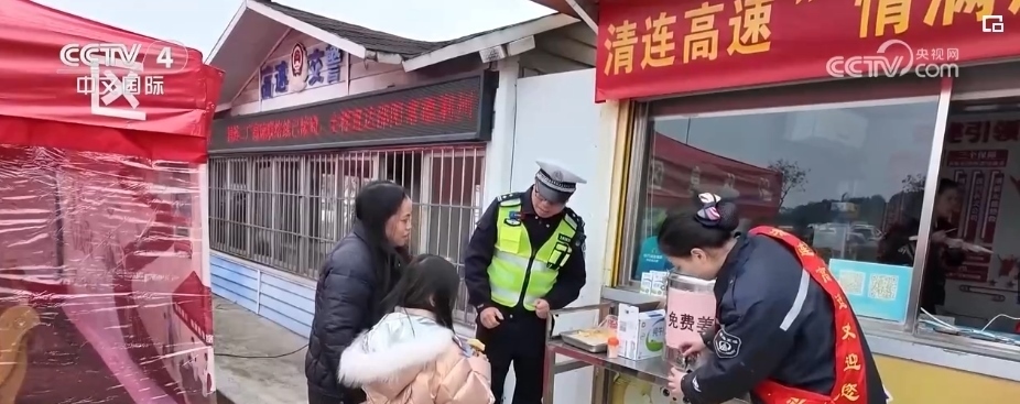 春運期間,廣東清遠市公安局在全市范圍內(nèi)設置了34個春運暖心服務點?,F(xiàn)場工作人員除了提醒引導廣大司乘人員嚴格遵守交規(guī),共同打造安全、暢通的高速公路通行環(huán)境之外,還對在服務區(qū)內(nèi)休整的司乘人員免費提供暖心服務,打造溫暖春運路。