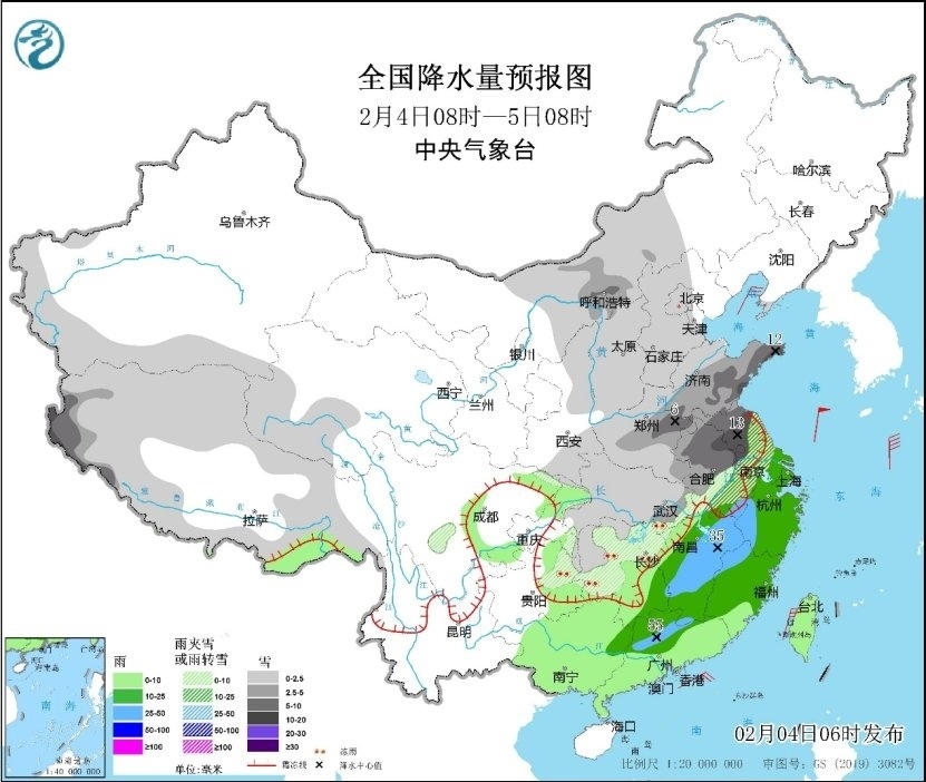 央視網(wǎng)消息:據(jù)中央氣象臺(tái)網(wǎng)站消息,昨日(2月3日),內(nèi)蒙古西部、甘肅中部、陜西中部、山西南部、河南中南部、安徽北部、江蘇北部、湖北中北部等地部分地區(qū)出現(xiàn)小到中雪,河南東南部、湖北中部等地局地大雪或暴雪;安徽中部、江蘇中部、湖北東部、湖南中北部、貴州東北部降雪或雨夾雪5~15毫米,局地降水量20~52毫米;貴州東部、湖南北部、湖北東部、安徽北部等地出現(xiàn)凍雨。