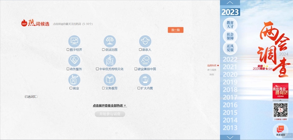 人民網(wǎng)推出2024年全國(guó)兩會(huì)調(diào)查 十大熱詞等您選出