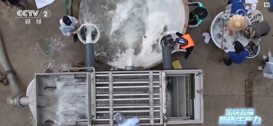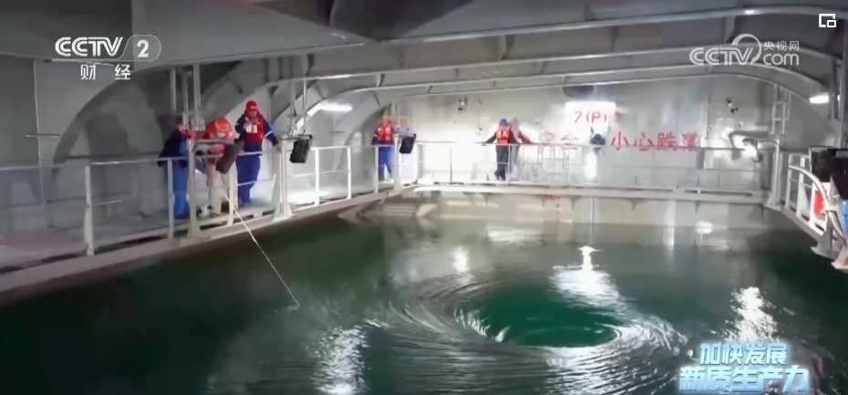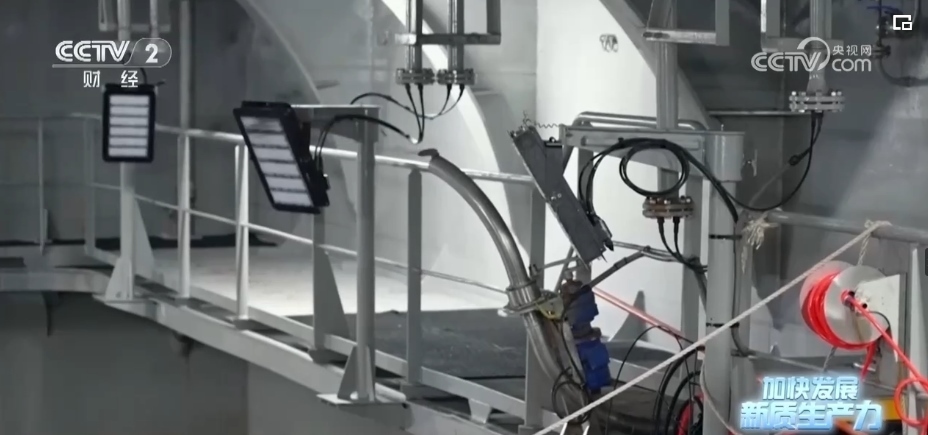 依靠首創(chuàng)的“船載艙養(yǎng)”模式,國信1號養(yǎng)殖工船,每年能實(shí)現(xiàn)3700噸高品質(zhì)魚類和650噸優(yōu)質(zhì)蛋白的供給。到了收獲的時候,艙內(nèi)的大黃魚將通過吸魚泵和傳送帶直接轉(zhuǎn)運(yùn)至休眠池,在那里進(jìn)行快速降溫休眠鎖鮮。
