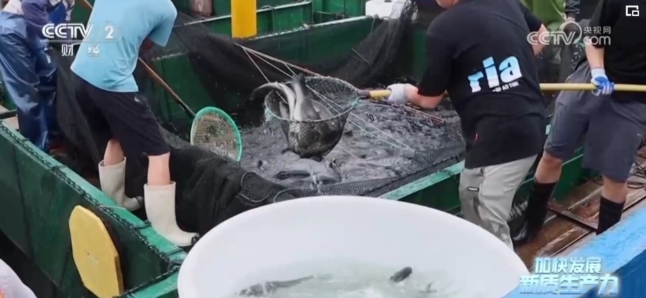 入苗、投喂、換水、起捕、加工、運(yùn)輸……全流程的智慧化讓這座龐大的海洋牧場同時成為一座巨型的海上漁業(yè)工廠。