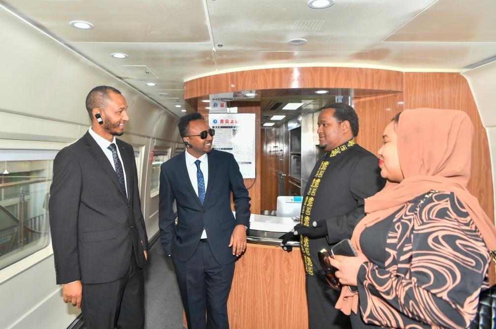 2023年11月7日,首屆亞吉鐵路高層管理人員培訓在天津鐵道職業(yè)技術學院舉行結(jié)業(yè)儀式。這是結(jié)業(yè)人員在高鐵模擬車廂內(nèi)交談。