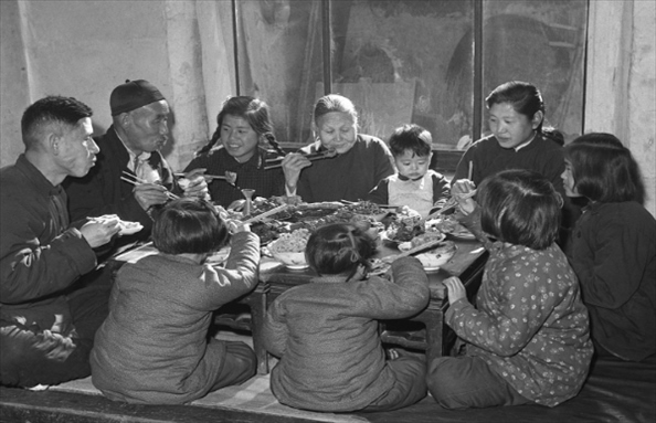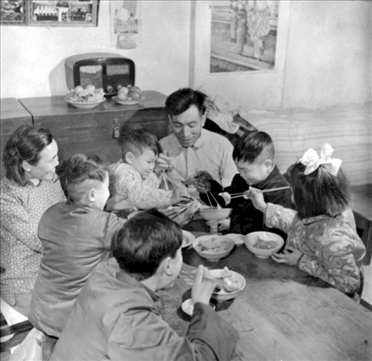1960年,遼寧鞍鋼老工人于德舉一家在吃年夜飯。為過年準(zhǔn)備一頓豐盛的飯菜是當(dāng)時(shí)人們頗費(fèi)腦筋的事。