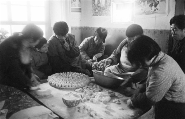 1984年,北京豐臺一家人在包餃子。