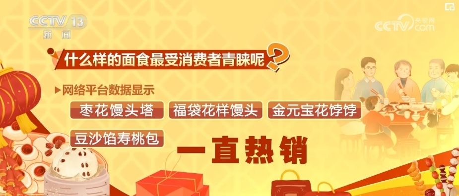 什么樣的面食最受消費(fèi)者青睞?網(wǎng)絡(luò)平臺數(shù)據(jù)顯示,寓意著步步登高的棗花饅頭塔、福袋花樣饅頭、金元寶花餑餑還有豆沙餡壽桃包一直熱銷。