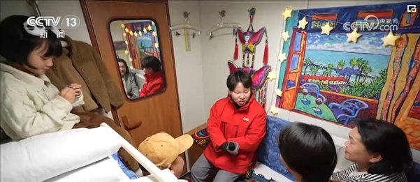 就在記者采訪時,列車員邀請大家去一號車廂參加一個聯(lián)歡會。春節(jié)爆滿的車廂,讓他們也感受到了濃濃的年味兒。