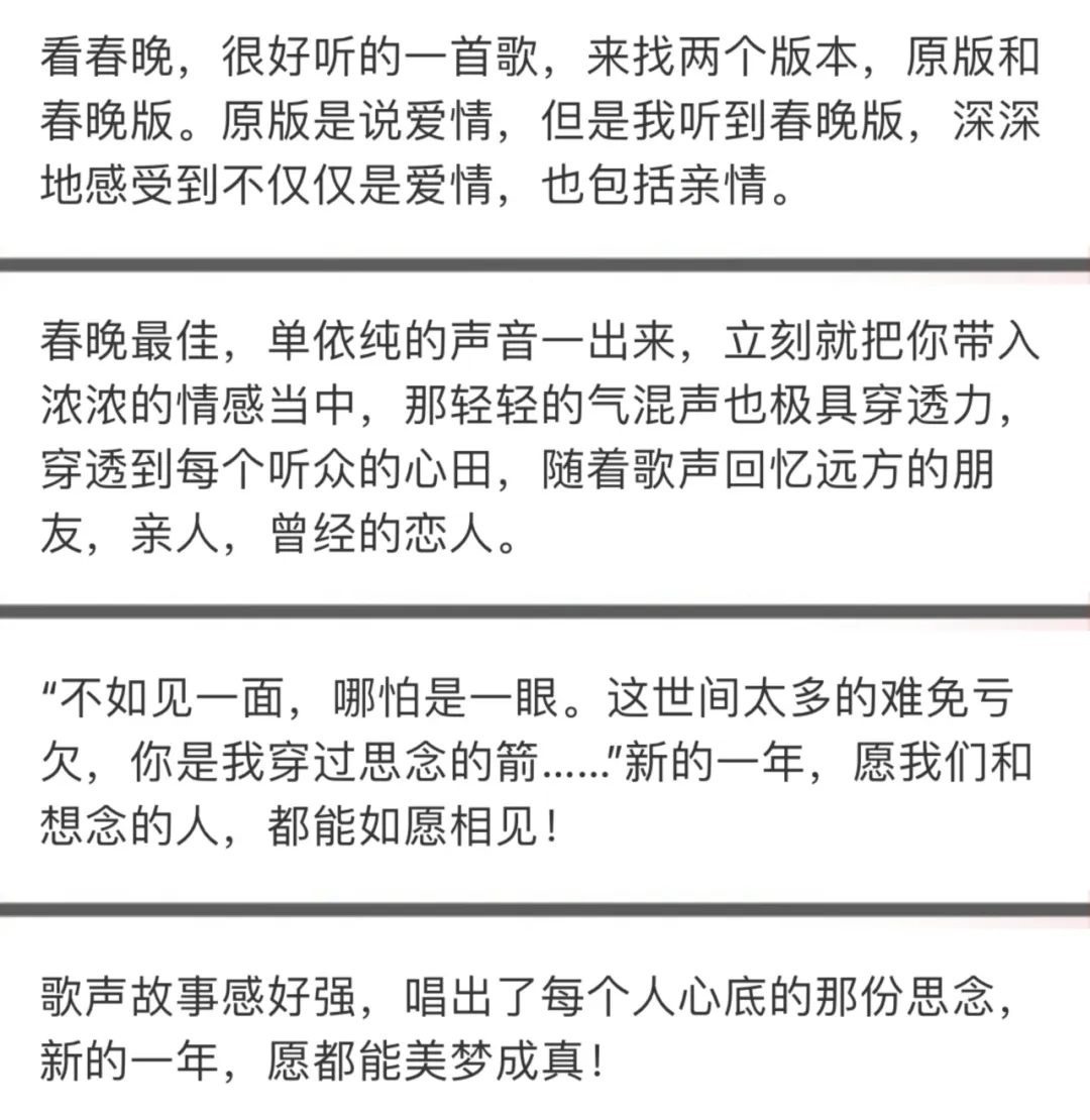 這首《不如見一面》迅速?zèng)_上各大音樂平臺(tái)的熱搜榜首位,“從春晚來的”網(wǎng)友涌進(jìn)評(píng)論區(qū),書寫起自己的故事。一首氣質(zhì)凄美的歌,為何能如此抓人,讓人忍不住反復(fù)“單曲循環(huán)”?