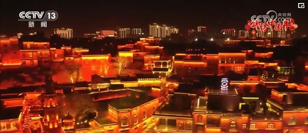 當(dāng)夜幕降,臨燈光亮起,總臺春晚新疆喀什分會場主舞臺在與喀什古城民居交相輝映,喀什古城變了浪漫舞臺。土陶店、手打銅器店等特色店鋪門前站滿了游客。烤肉、抓飯、鴿子湯等特色美食更是吸引著大家駐足品嘗。