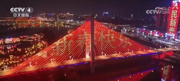 夜幕降臨,新春光影秀點亮城市夜景,多個城市地標(biāo)建筑流光溢彩,市民游客共同感受龍年的歡騰圖景。