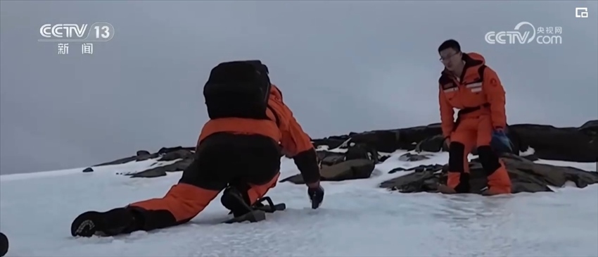 在登島的小隊里,大家分工明確,有人負責找路、有人負責取樣、有人負責聯(lián)絡。在冰天雪地里翻山越嶺,“90后”考察隊員何靖一直主動承擔探路的任務,雖然這次是他第一次參加極地考察,但探起路來卻有很多經驗。