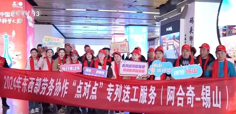 在江蘇無錫,用工企業(yè)早早來到火車站口,迎接首批新疆務工人員的到來?!包c對點”大巴車將員工直接送到企業(yè)門口。