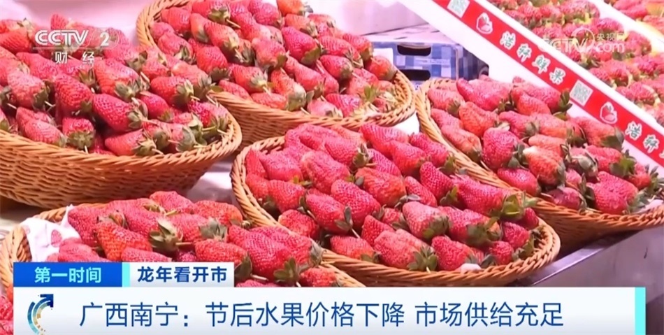 春節(jié)假期過后,在廣西南寧,記者走訪發(fā)現(xiàn)水果市場有所“降溫”,大家想要品嘗車?yán)遄?、草莓等水果正是好時機。