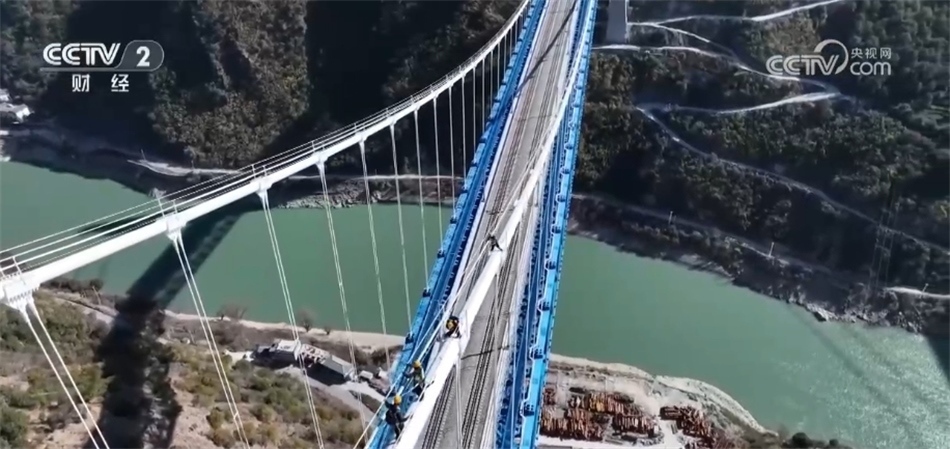 央視網(wǎng)消息:今年,滇藏鐵路麗江至香格里拉段迎來開通后的首個(gè)春運(yùn),在重點(diǎn)控制性工程——虎跳峽金沙江鐵路大橋,一群檢修人員要在距離江面200多米的高空對大橋進(jìn)行全面檢查,遠(yuǎn)遠(yuǎn)望去就像是在高空“走鋼索”,一起跟隨記者的鏡頭去看看。