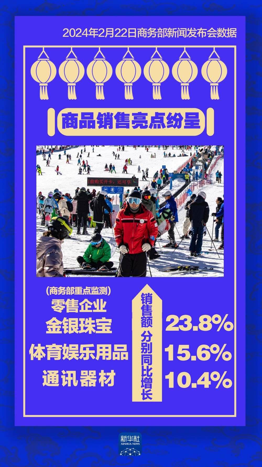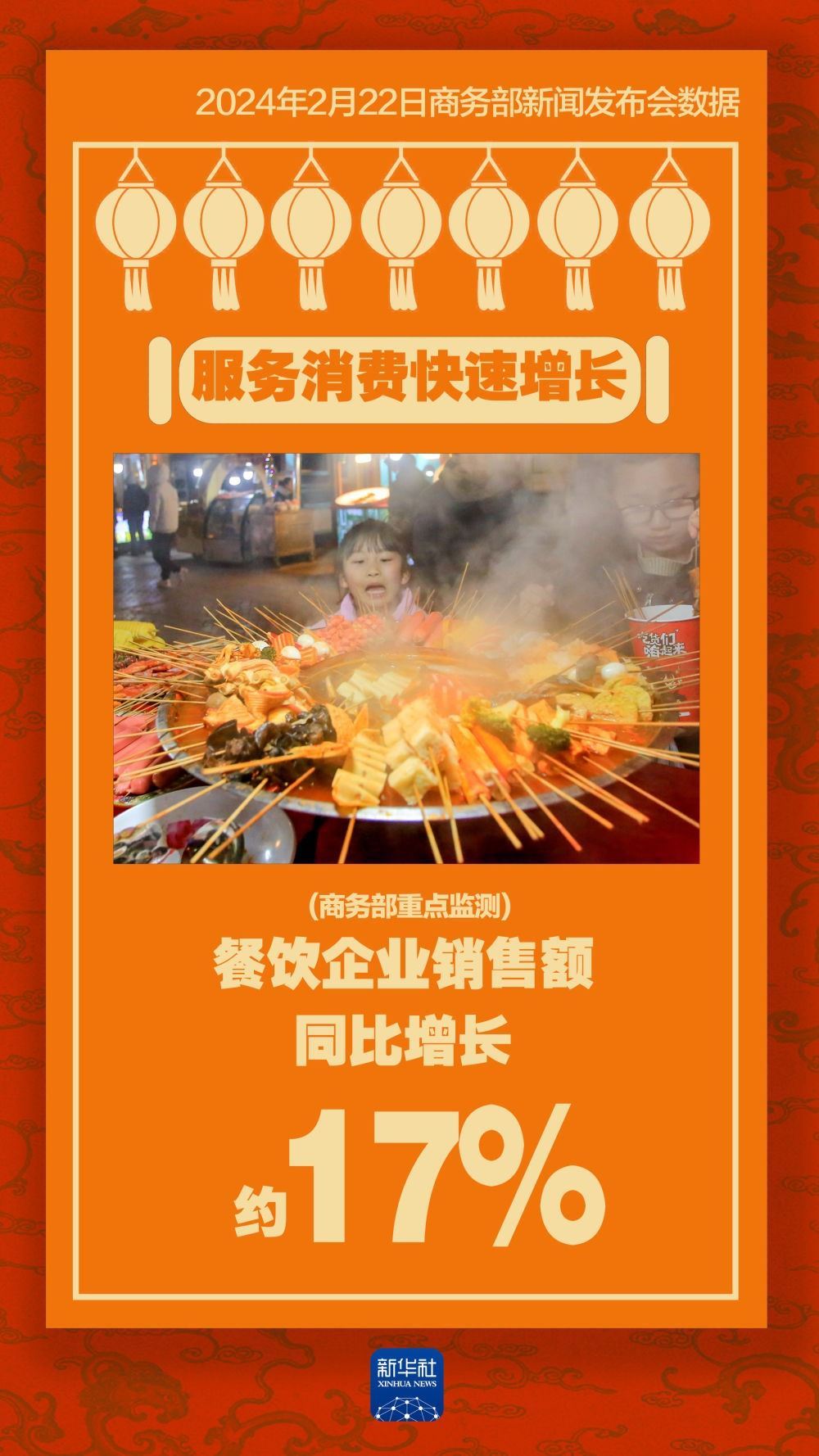 2月22日,商務(wù)部召開(kāi)例行新聞發(fā)布會(huì)。商務(wù)部新聞發(fā)言人何亞?wèn)|說(shuō),今年春節(jié)消費(fèi)市場(chǎng)年味濃、活力足、人氣旺,銷(xiāo)售較快增長(zhǎng),實(shí)現(xiàn)良好開(kāi)局。在新春消費(fèi)旺季和各項(xiàng)政策措施帶動(dòng)下,預(yù)計(jì)一季度消費(fèi)市場(chǎng)將呈現(xiàn)平穩(wěn)增長(zhǎng)態(tài)勢(shì)。