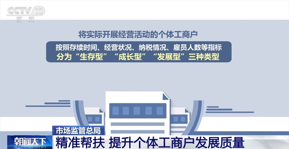 市場監(jiān)管總局登記注冊局局長任端平介紹詳情,他表示,實施分型分類,根本目的是結(jié)合個體工商戶發(fā)展實際,加強(qiáng)政策支持幫扶的精準(zhǔn)性、針對性和科學(xué)性,讓個體工商戶能感受到實實在在的政策紅利和獲得感。