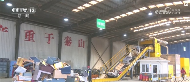在北京市海淀區(qū)這家再生資源分揀中心里,一臺兩層樓高的自動化破碎設備正在運轉。2023年,有19萬件廢舊沙發(fā)、桌椅等大件垃圾都在這里被分揀破拆處置。
