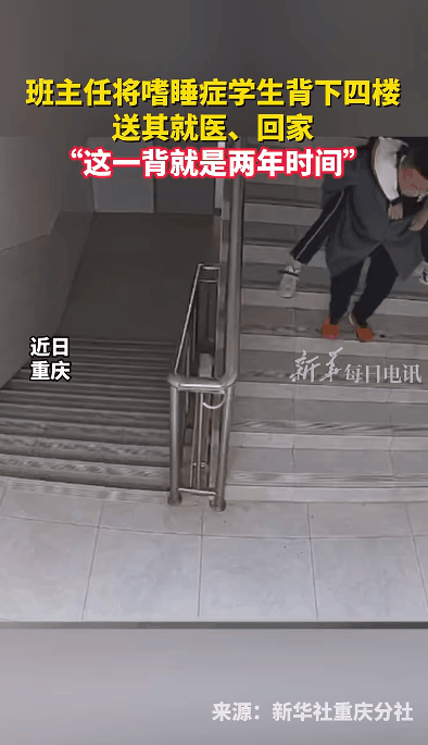 重慶墊江中學(xué)初二班里有位留守同學(xué)患有“嗜睡癥”,常常一睡不醒。老師們試過捏鼻子、用冷水巾擦臉、輕拍臉頰,多種方式都不奏效,最嚴(yán)重時一周會發(fā)作兩三次。每次他一睡不醒時,班主任徐龍軍都會把他從四樓寢室背下來,送他回家或就醫(yī),這一背就是兩年。