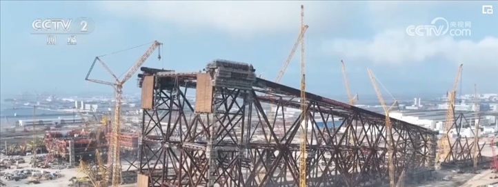 固定式導(dǎo)管架平臺是海洋油氣開發(fā)的關(guān)鍵裝備,由水下導(dǎo)管架、樁腿和水上的生產(chǎn)模塊三部分組成。導(dǎo)管架作為“地基”,支撐著整個海上油氣平臺的穩(wěn)定與安全?!昂;枴睂?dǎo)管架總高338.5米,總重達37000噸,用鋼量接近“鳥巢”國家體育場。由于其所處海域臺風頻發(fā),風浪及內(nèi)波流極為強烈,因此,該導(dǎo)管架是按照百年一遇的惡劣海況進行設(shè)計。