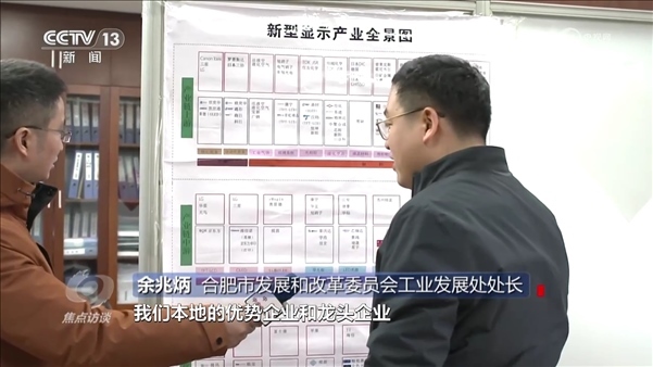 合肥市發(fā)展和改革委員會(huì)工業(yè)發(fā)展處處長(zhǎng)余兆炳:“新型顯示產(chǎn)業(yè)全景圖上面顯示了合肥市發(fā)展新型顯示的產(chǎn)業(yè)鏈的上游、中游、下游本地的優(yōu)勢(shì)企業(yè)和龍頭企業(yè),有這個(gè)全景圖,我們對(duì)標(biāo)作戰(zhàn)、掛圖作戰(zhàn)非常可視化作戰(zhàn)。”