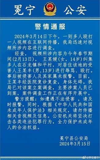 ·警方通報(bào)男孩跪地遭多名男女毆打:受害者無(wú)礙,主要涉案人員已到案。