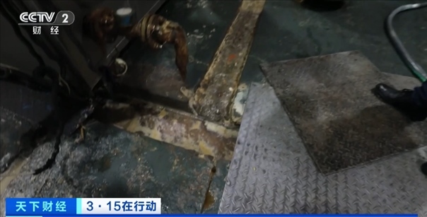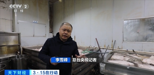 總臺央視記者 李雪峰:在企業(yè)的生產(chǎn)車間里,可以看到環(huán)境是十分惡劣。地面上污水橫流,夾雜著油污的水順著水渠一直涌向了地溝,生產(chǎn)車間里設備已是銹跡斑斑。